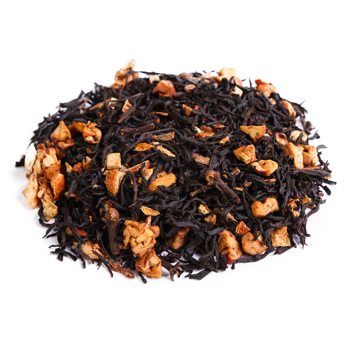 Слегка пряный зимний чайный напиток на основе крупнолистового цейлонского черного чая, с добавлением цедры апельсина, кусочков сушеного яблока, дробленой корицы и гвоздики с легкими нотками малины во вкусе и аромате.