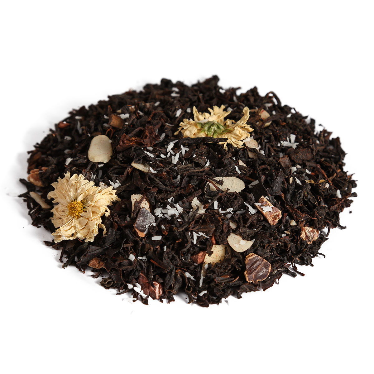 Напиток с шоколадно-кокосовым вкусом и ароматом на основе индийского черного чая Ассам с добавлением кусочков зерен какао-бобов и жареного арахиса.