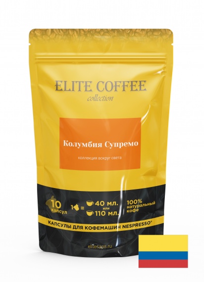 Кофе в капсулах для Nespresso Колумбия Супремо Арабика ELITE COFFEE (10шт)